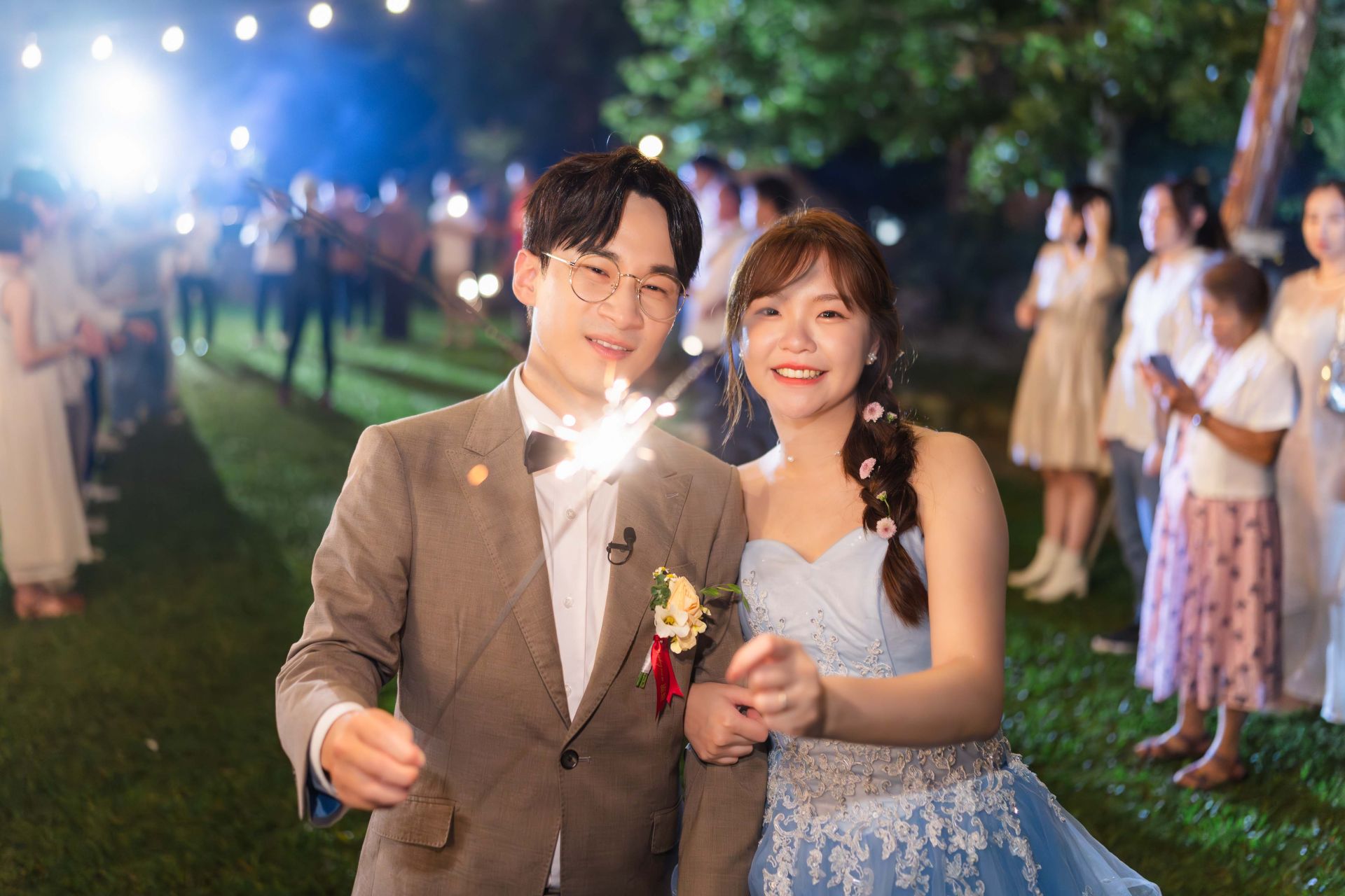 夜晚的仙女棒一亮