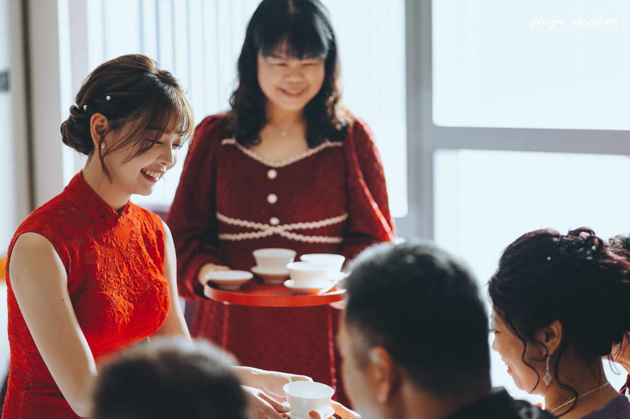 陪同新娘奉茶,協助提醒稱謂、輩分。