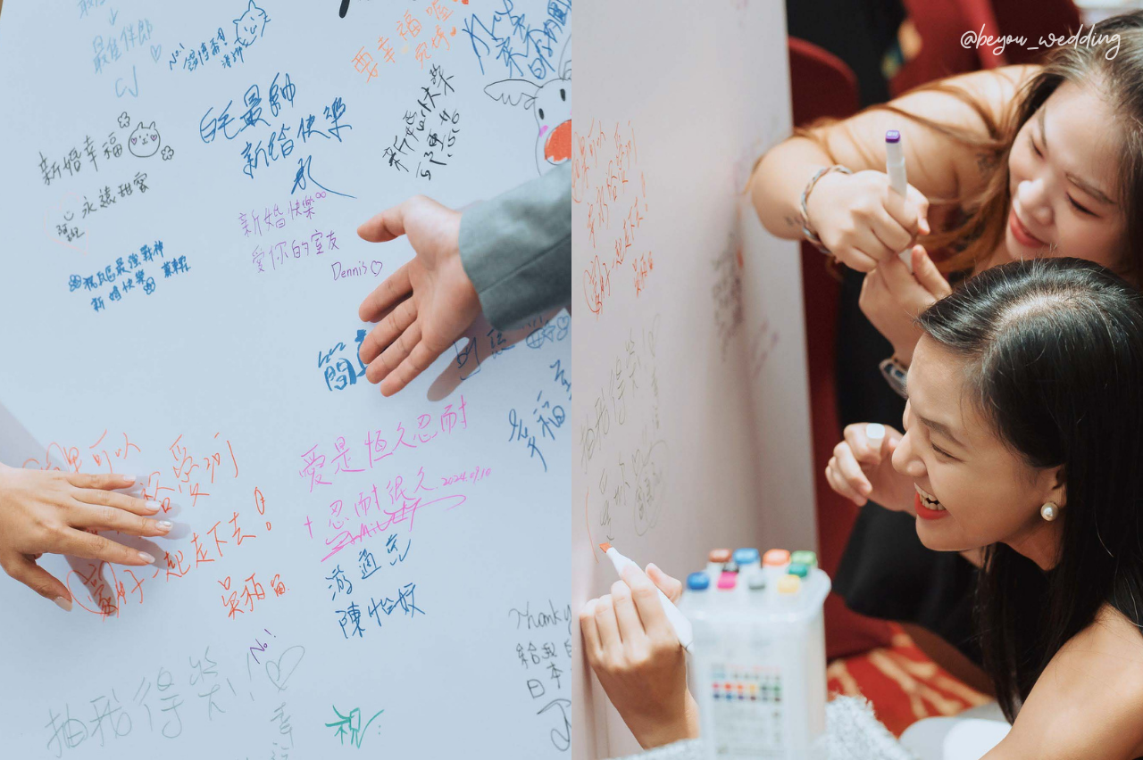 更有趣的是,婚禮中段還抽選留言賓客,送上驚喜小禮物,讓簽到環節成了一場互動式甜蜜遊戲。